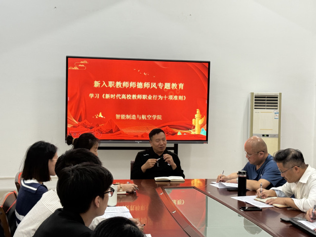会议伊始,院长首先代表学院对新进教师加入智能制造与航空学院大家庭表示热烈欢迎。他指出,新教师是学院发展的生力军,而师德师风则是教师队伍素质的第一标准。在当前加快建设教育强国、科技强国、人才强国的大背景下,作为承担智能制造与航空领域人才培养重任的教师,不仅要业务精湛,更需师德高尚。